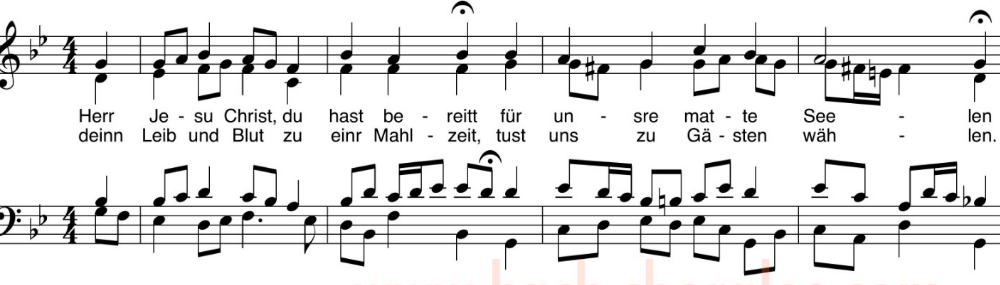Het koraal is een avondmaalslied en stamt uit 1638. Het telt acht strofen. De strekking van het lied is dat de mens als arme zondaar door Christus in genade wordt aangenomen en van hem brood en wijn ontvangt als teken van zijn lichaam en bloed wat hij heeft gegeven ter vergeving van de zonden. De tekstschrijver is Samuel Kinner. Over wie deze persoon precies was bestaat geen zekerheid. Misschien was het een arts afkomstig uit Breslau. Dit koraal is ook het enige wat van hem bekend is. Wie de componist van de melodie is is niet duidelijk. Er wordt in elk geval niet vanuit gegaan dat die van Bach zelf is. Wel weten we dat er een dag is geweest dat Bach zijn ganzenveer in zijn inktpot doopte en een vierstemmige zetting van dit koraal aan het papier toevertrouwde. Hoe deed Bach dat? Kwam dat zomaar vanzelf uit zijn pen of was hij daar toch wel even mee bezig? Wat mij betreft is het duidelijk dat Bach bij dit koraal geen muzikale tekstuitbeelding wilde bewerkstelligen (zoals hij wel deed bij koraalzettingen in zijn Passionen en hij op die manier bepaalde woorden extra inhoud kon geven). Dan had in dit koraal bijvoorbeeld de harmonisatie op het woord ‘Sündenlasst’ een dissonant geklonken. Bachs zetting is dan ook niet alleen voor de eerste strofe maar ook voor de zeven die daar nog op volgen. Nee, wat Bach doet is eenvoudigweg een prachtig klinkende vierstemmige harmonisatie neerschrijven, misschien toch nog wel geinspireert door de mooie en diepzinnige tekst van het koraal. We weten immers – dat is vastgelegd in de analen van de kerk – dat hij regelmatig aan het avondmaal ging. En hoewel het koraal in g-klein staat krijgt het door de harmonisatie – en zeker door de tenorpartij – een opgetogen karakter. Bach sluit het koraal dan ook af in G-groot.