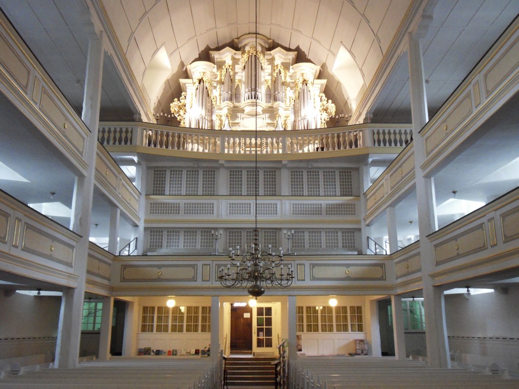 Om 15.00 uur begint de cantatedienst in de Thomaskirche. Er wordt net als gisteren een entree van 2 euro gevraagd. Toch is het geen concert maar een complete dienst met orgelspel, koor- samenzang, schriftlezing, preek en gebeden. Tot slot volgt dan de cantate: Gelobet sei der Herr, BWV 129. De preek van de vrouwelijke ‘Pfarrer’ behelst een uitleg van de tekst van deze cantate. Het is een zogenaamde koraalcantate, dat wil zeggen dat de tekst (van Johann Olearius) bestaat uit een bestaand kerklied en iedere strofe een eigen bewerking krijgt. Het blijkt dat dit kerklied het lied van de week is. Gisteren zongen we het al en vandaag ook weer. Het lied is verbonden aan de komende zondag: Trinitatis. Voor deze zondag heeft Bach de cantate ook geschreven. Trinitatis is het feest van de Drie-eenheid, altijd volgend op de zondag na Pinksteren waarbij de uitstorting van de Heilige Geest wordt gevierd. De eerste en de laatste strofe zijn voor het koor, de tweede, derde en vierde strofe achtereenvolgens voor de bas, sopraan en alt. De eerste drie strofen bezingen achtereenvolgens de Vader (mein Licht), de Zoon (mein Heil) en de Heilige Geest (mein Trost): Gelobet sei der Herr, mein Gott, mein Licht, mein Leben. Bach heeft het complete orkest ingezet bij deze feestelijke cantate: naast de gebruikelijke strijkers doen fluiten, hobo’s, trompetten en pauken mee. Schitterend is de sopraanaria die de lof tot de Heilige Geest bezingt prachtig omlijst door een traverso (barokdwarsfluit) en viool.