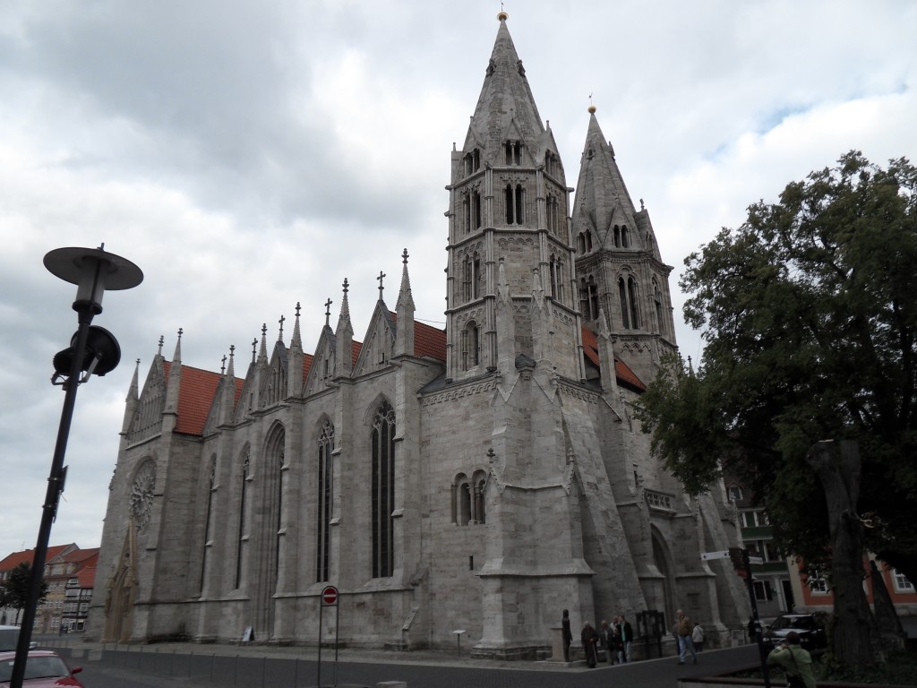 Om half 6 fiets is het grote marktplein op. Het is erg rustig in de stad en het plein ligt er verlaten bij. Aan de andere kant van het plein staat de monumentale Blasiuskirche. De uit lichte stenen opgetrokken kerk met twee grote torens heeft de allure en het model van een Franse kathedraal. Alleen al wat dit betreft is duidelijk dat Bach promotie heeft gemaakt met een betrekking in deze kerk. En inderdaad, hij ging ook aanmerkelijk meer verdienen. De functie van organist stond in deze vrije rijksstad dan ook in hoog aanzien.
